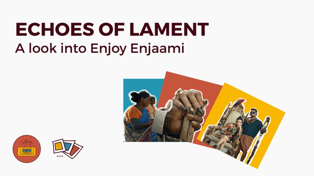 Enjoy Enjaami is a viral, South Asian, Tamil language, Hip Hop music video. It beautifully weaves together significant cultural and historical threads across its distinct instrumentation and lyrics. The song fuses standard hip hop beats with the mournful sounds of Oppari, a genre of Tamil lament music traditionally performed at funerals.